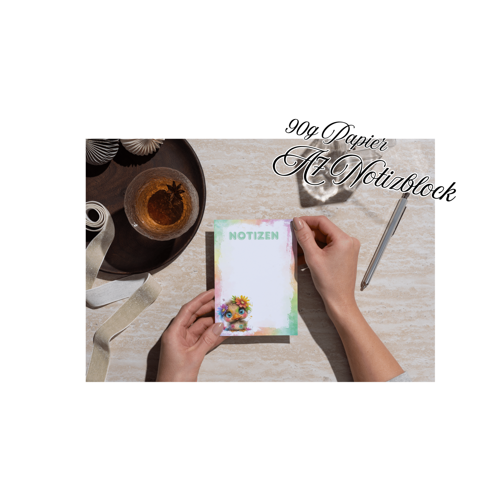 Dieser niedliche kleine A7 Notizblock hat 50 Seiten auf denen ihr Kleinigkeiten aufschreiben könnt.
