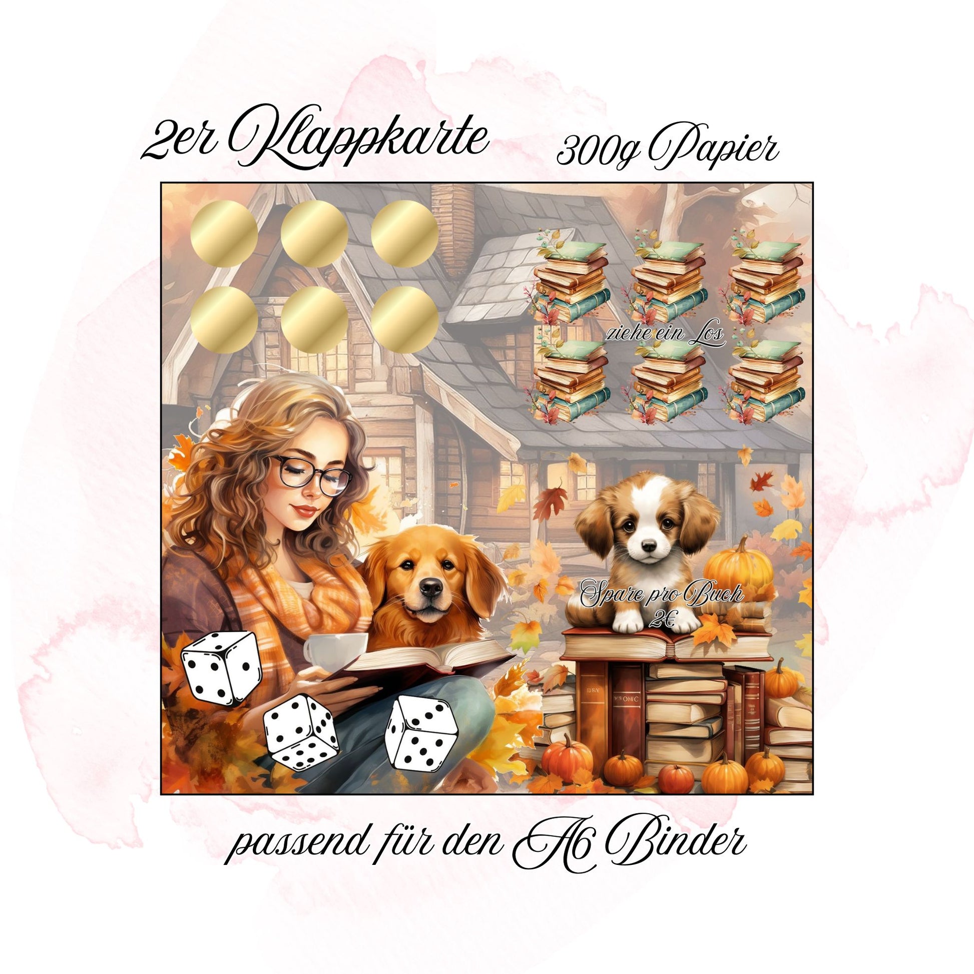 Autumn Book Love ist eine 2fach Klappkarte mit der man spielerisch sparen kann. Es ist alles dabei, zum Würfeln, zum Losen, zum rubbeln und abstreichen.