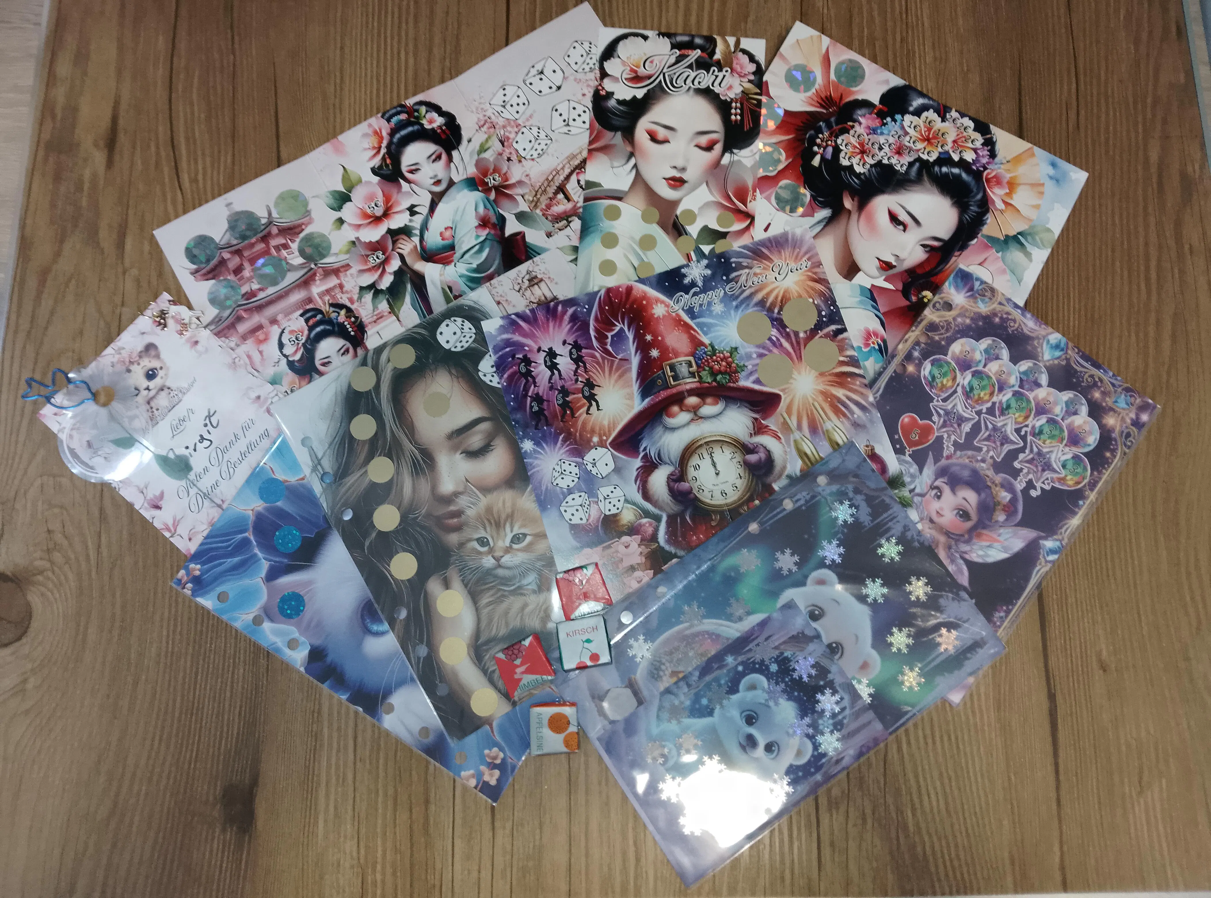 In den verschiedenen Bereichen findest du Möglichkeiten zum Abstreichen, rubbeln, Lose ziehen und Würfeln.