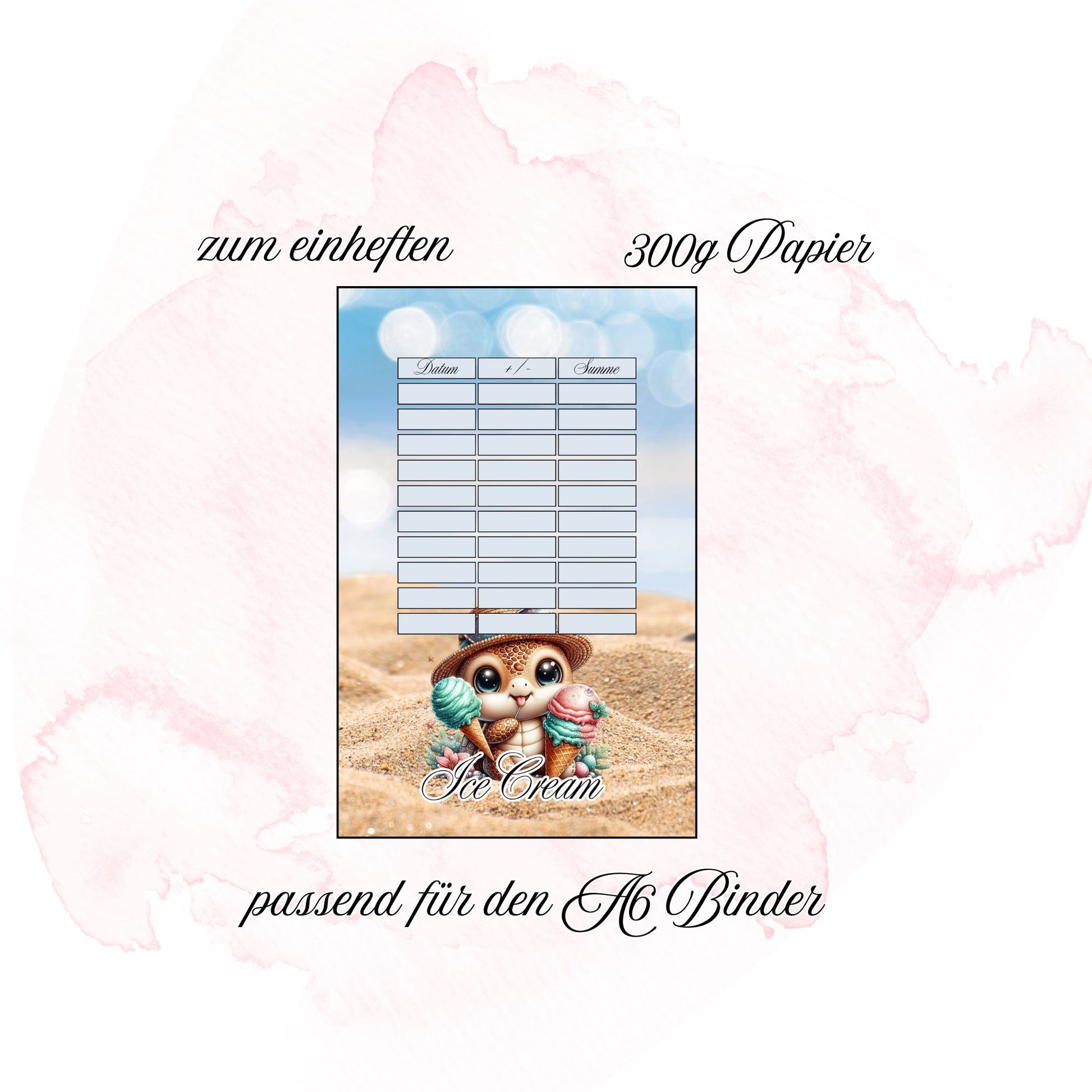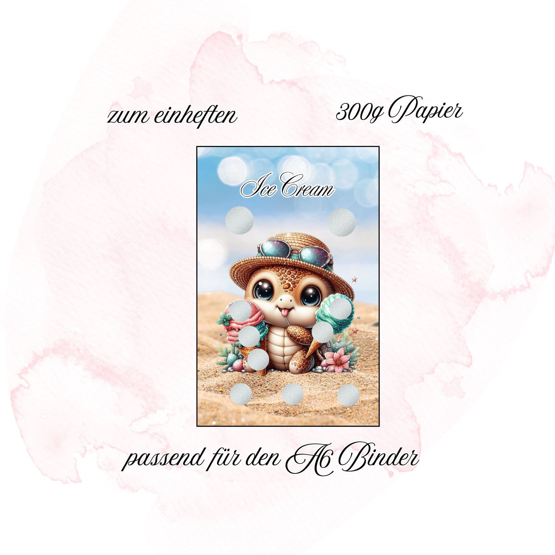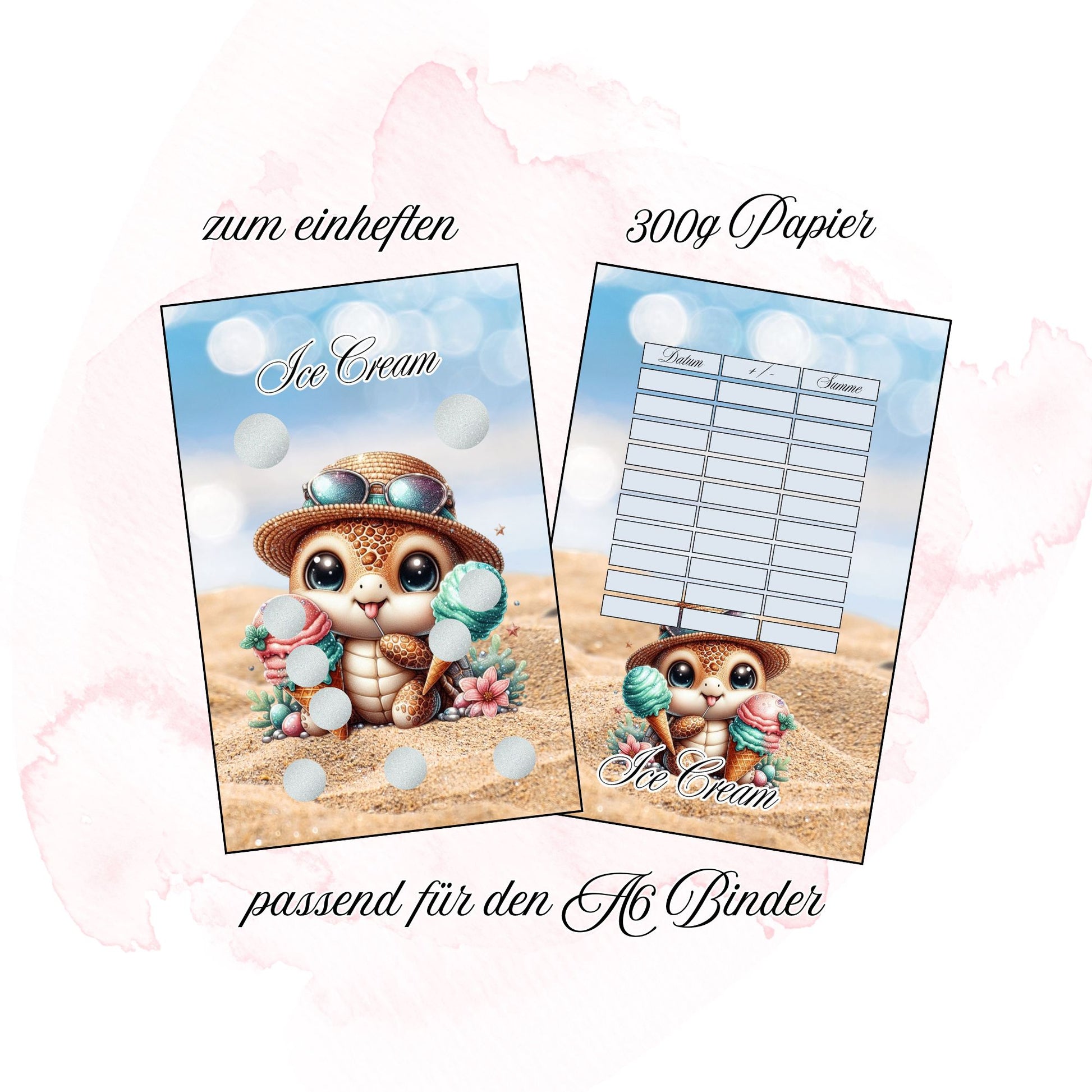Ice Cream ist eine Rubbelchallenge zum einheften in Deinen A6 Binder. Die Beträge sind zwischen 1€ und 10€.