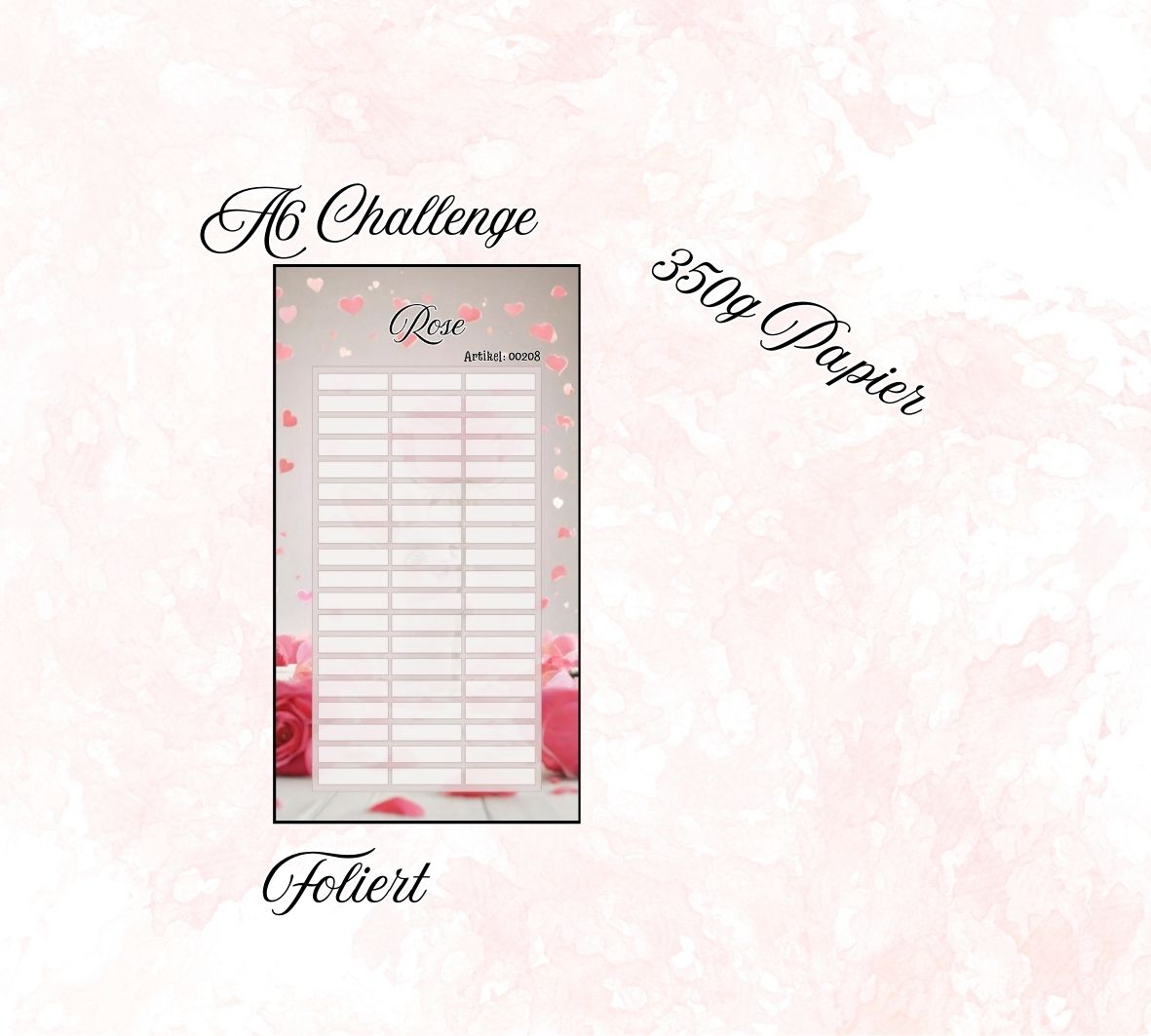 Die folierte Challenge ist auf stabilem 350g Papier gedruckt, langlebig und für wiederholte Nutzung geeignet. Das sanfte, romantische Design macht sie zu einem liebevollen Begleiter im Alltag oder zu einer schönen Geschenkidee.