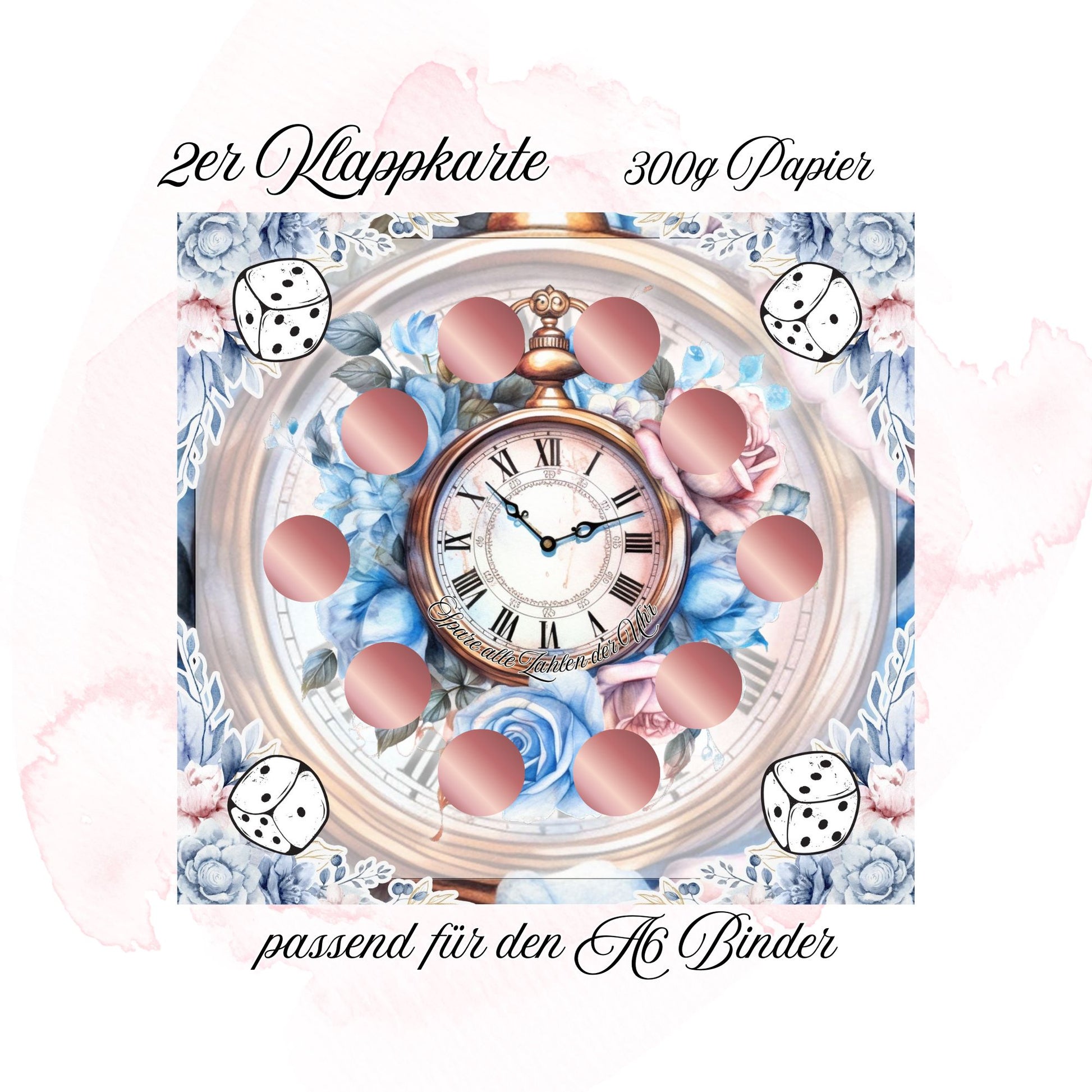 Mit dieser 2er Klappkarte könnt ihr spielerisch Geld durch Rubbeln, Würfeln und Absteichen sparen.