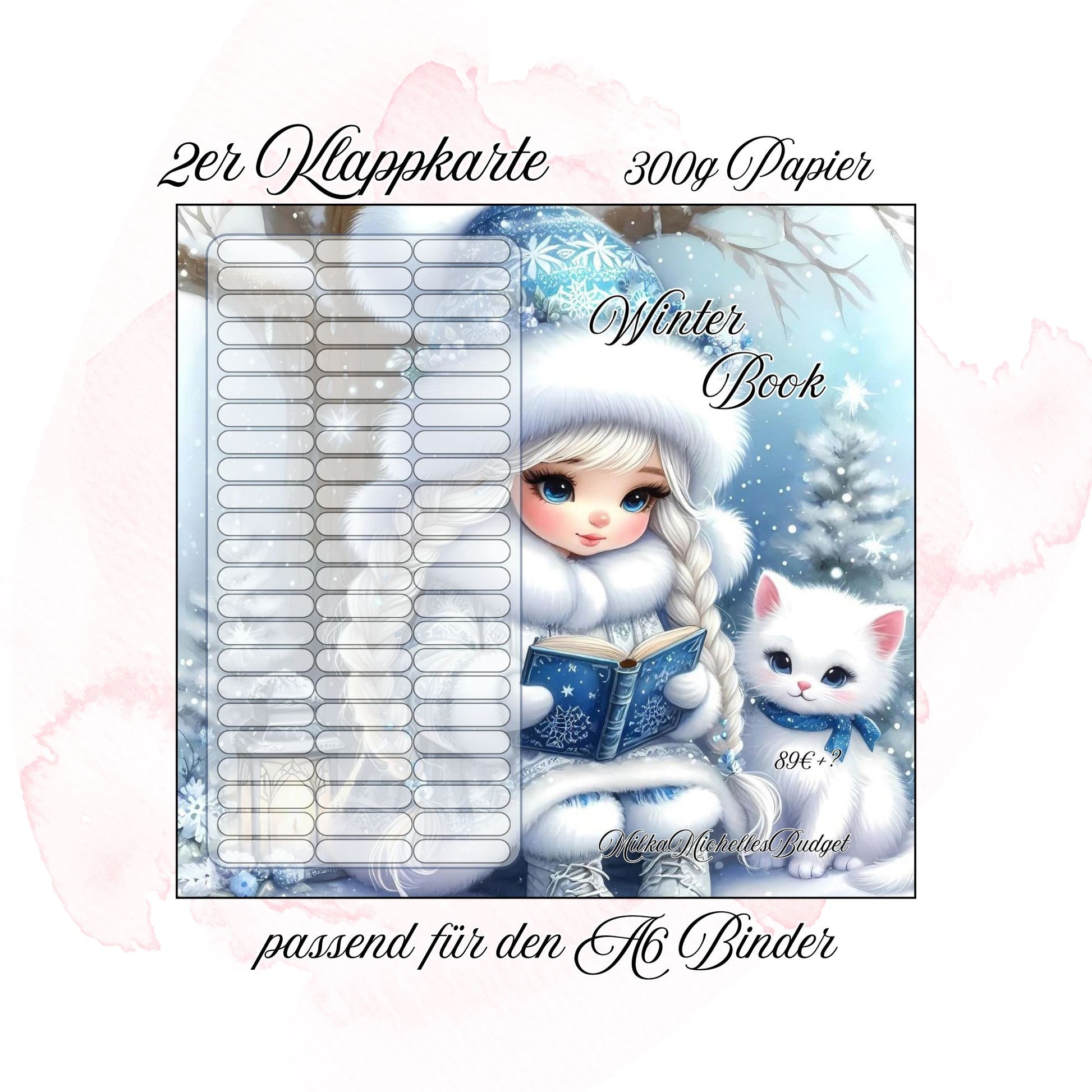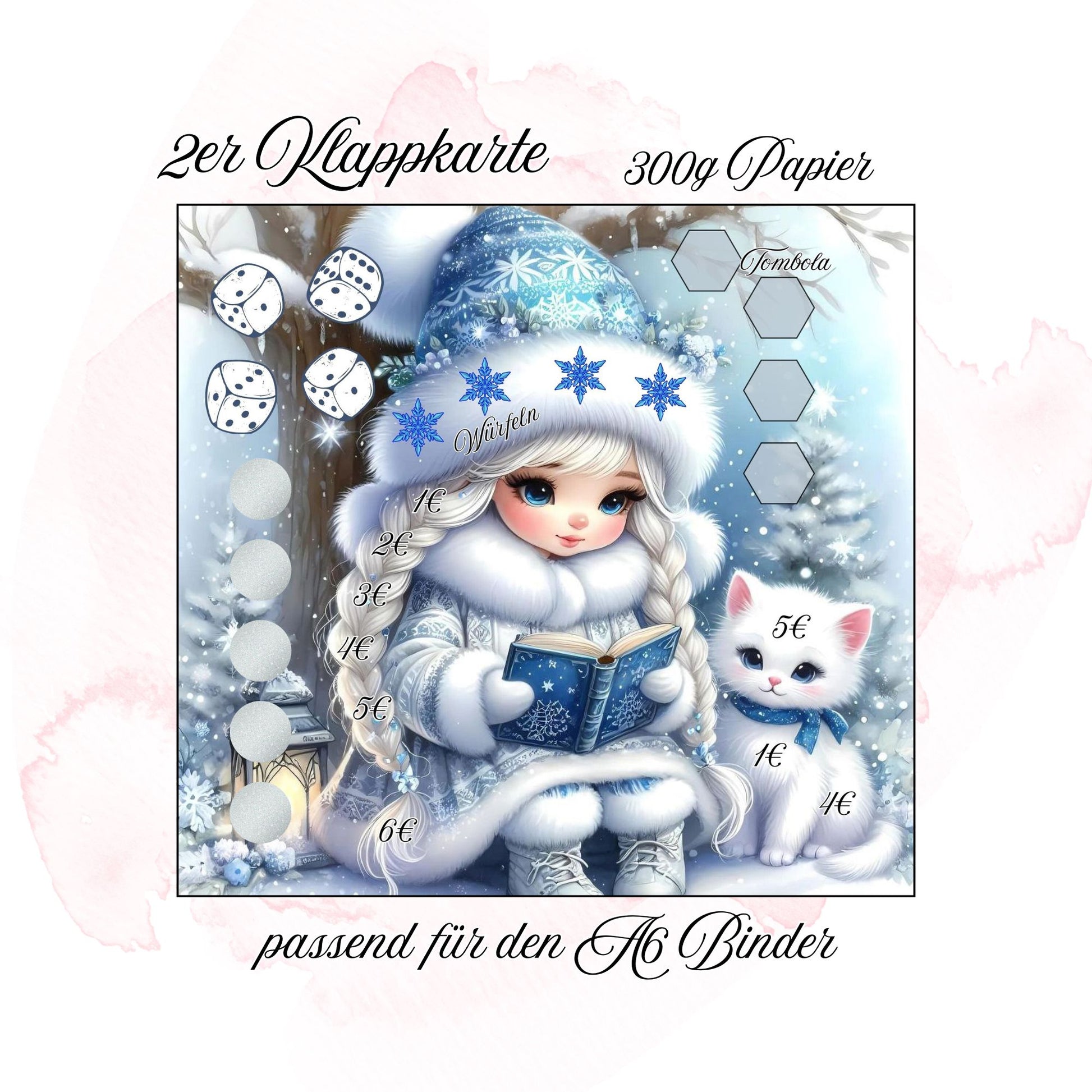 Winter Book ist eine 2fach Klappkarte mit der man spielerisch sparen kann. Es ist alles dabei, zum Würfeln, zum Losen, zum rubbeln und abstreichen.